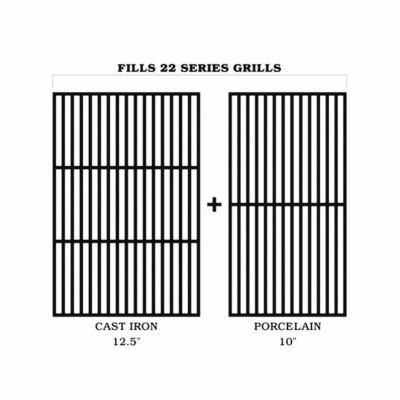 Traeger, 22 Series, Cast Iron Grill Upgrade Kit, Cast Iron Grate Has Even Heat Distribution Across The Entire Grate & Gives A Perfect Sear To Seal In Flavor, Porcelain Grate Has A Non-Stick Surface & Cleans Easily After Grilling Saucy Ribs Or Juicy Chicken, Includes One 12.5" x 19" Heavy Cast Iron Grate, One 10" x 9" Porcelain Grill Grate, Fits The Following: Pro Series 22 #'s Tfb57lzb & Tfb57lub, Lil' Tex Elite 22 #Tfb42lzb, Lil' Tex Pro #'s Bbq07e.01 & Bbq07e.02. vendor ID: 59972 Price/Unit: 59.99EA model: BAC366