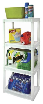 22"W x 14"L x 48.25"H, White, 4 Shelf Unit, Solid Plastic Shelf, Ideal For Basement, Laundry Room, Closet, Holds 200 LB, Total 50 LB Per Shelf. vendor ID: 9530 Price/Unit: 19.99EA model: 917702