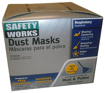 25 Pack, Non-Toxic Dust Masks, Moldable Metal Noseband Reduces Fogging in Glasses, Latex Free & Hypoallergenic For Users With Sensitive Skin, Heavy Duty Elastic Strap Keeps Mask Secure. vendor ID: 3192 Price/Unit: 8.49EA model: 10059526
