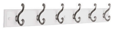 27", White, 6 Scroll Satin Nickel Hook Rail, 3.02"L x 28.75"W x 5.5"H, Traditional Style, Carded. vendor ID: 36665 Price/Unit: 22.99EA model: 139639