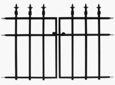 27"H x 37"W x 1"D, Black, Classic Finial Style, 2 Piece Gate Section, Powder Coated Steel, Use Post TV #820-706 To Connect Gate To Fence Sections TV #176-700. vendor ID: 75184 Price/Unit: 19.99EA model: 87104