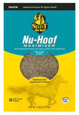 2 LB, Nu-Hoof Maximizer, Scientifically Formulated Equine Supplement With 30 mg Of Biotin, Folic Acid, Riboflavin, Methionine, Copper, Iodine & Zinc, Based On Research That Demonstrated The Beneficial Effects Of A Biotin Based Supplement On Hoof Condition By Reducing The Incidence & Severity Of Horn Defects, Increasing Tensile Strength, & Improving The Condition Of The White Line. vendor ID: 6876 Price/Unit: 24.99EA model: 390201