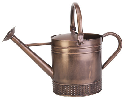 2 Gallon, Brushed Copper, Embossed Watering Can, Dark Copper Powder Coated Finish With Brushed Accents & Embossed Rivet Pattern, Powder Coated Steel Construction, Angled Spout, Diffuser Included Attaches To Spout To Create Gentle Water Flow, Large Loop Handle At The Top. vendor ID: 209 Price/Unit: 21.99EA model: 84875