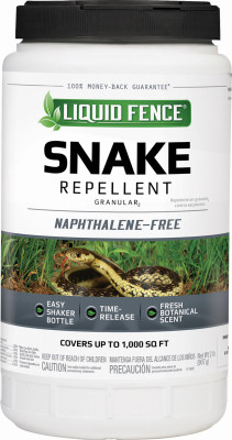 2 LB, Liquid Fence Snake Repellent Granular, Long Lasting Formula Is Lab Tested, Proven Highly Effective, It's Naphthalene Free Consumers Are Assured Of Quick Results Without Dangerous Chemicals, Biodegradable, Liquid Fence Snake Repellent Granular Has A Unique Combination Of Ingredients To Repel Snakes By Irritating & Confusing Their Sense Of Taste & Smell, Forcing Them To Look Elsewhere To Survive, 100% Money Back Guarantee. vendor ID: 68395 Price/Unit: 17.99EA model: HG-85010
