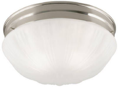 2 Light, Flush Mount, Ceiling Fixture, Brushed Nickel Finish With Frosted Fluted Glass, Height 5-3/4", Diameter 10-3/4", Use 2 Standard Base, Soft White, A19, 60W Maximum. vendor ID: 39800 Price/Unit: 31.99EA model: 67212