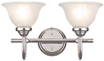 2 Light, Wall Fixture, Chrome Finish With White Swirl Glass Shade, 15-5/8" Width x 8-15/16" Height, Extends 10-15/16" From The Wall, Uses 2 Medium Base Light Bulbs, 60W Maximum, Not Included, For Interior Use Only, UL Listed. vendor ID: 39800 Price/Unit: 49.99EA model: 62311