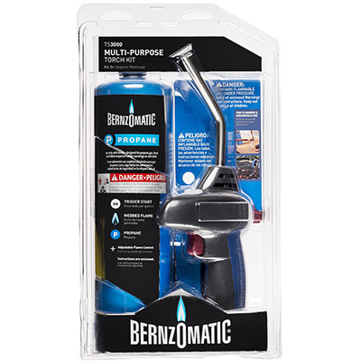 2 Piece, Self Igniting Torch Kit, Designed For A Variety Of Household Uses Including Light Soldering, Heating Putty Or Paint, Removing Rusty Bolts & Nuts, Thawing Frozen Locks, Torch Head Features An Ergonomically Designed Comfort Grip, Trigger Start For Easy Ignition & An Adjustable Flame Control Knob For Different Applications.Kit Includes: 14.1 OZ Propane Filled Cylinder. vendor ID: 82198 Price/Unit: 34.99EA model: TS3000KC