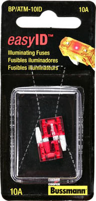2 Pack, 10A, 32VDC, Red Mini Auto Fuse, Illuminating LED Technology To Show That A Fuse Has Opened, Uses For Late Model Oem Applications, Color Coded Plastic Housing For Easy Identification Of Fuse Ratings, Dimensions: 1.86"L x 0.885"W x 0.29"H. vendor ID: 17228 Price/Unit: 3.79EA model: BP-ATM-10ID