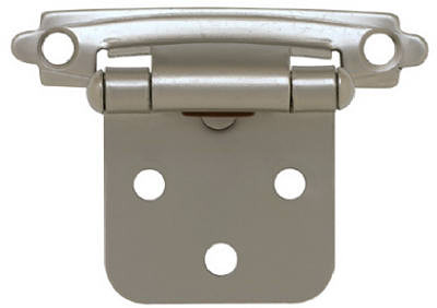 2 Pack, 2" x 3/4", Satin Nickel, Self Closing Overlay Hinge, 1/2" Screws Included In Polybag. vendor ID: 36665 Price/Unit: 2.99PKG model: H0103AV-SN-O2