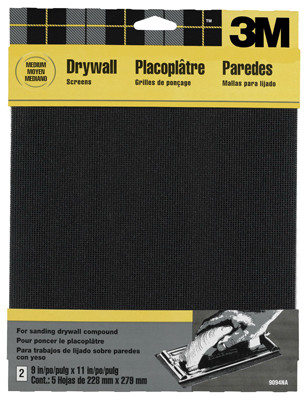 2 Pack, 9" x 11", Medium, Drywall Sanding Screen, Screen Features Open Mesh Cloth Backing Which Reduces Loading & Allows Both Sides To Be Used, Can Be Rinsed & Reused. vendor ID: 38398 Price/Unit: 5.29EA model: 9094