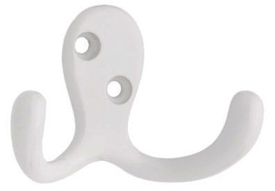 2 Pack, White, Zinc Double Prong Robe Hook, 1.2"L x 3.75"W x 6.5"H, Traditional Style, Carded. vendor ID: 36665 Price/Unit: 4.29EA model: 139600