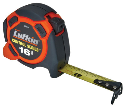 Lufkin, 3/4" x 16', Control Series Tape, Allows You To Control The Retracting Speed With Your Finger At The Bottom Of The Tape, Rugged Co-Molded Design Allows The Tape To Fit Securely In Your Hand With The Perfect Amount Of Grip & Comfort, Wide Tri-Tip End-Hook Design That Enables Hook To Catch & Provide Accurate Markings, Clear Coat Blade Protection For Durable Markings, Wide Slide Lock For Easy Reach, Through Hole At Bottom Of Tape That Allows One To Tether Straps Or Convenience To Hang. vendor ID: 547 Price/Unit: 11.99EA model: CS8516