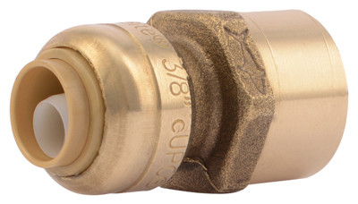 3/8" x 1/2", Sharkbite Push Fitting x FNPT Adapter, Makes A Connection To 3/8" Pipe Using A Push Fit Connection & Then Gives You A 1/2" Female NPT Adapter On The Opposite End, Use To Join Copper, CPVC Or Pex Pipe In Any Combination With No Soldering, Clamps, Unions Or Glue, Just Insert The Pipe & The Stainless Steel Teeth Bite Down & Grip Tight, While A Specially Formulated O-Ring Compresses To Create A Perfect Seal, Disassembly Is Just As Fast Using The Simple Disconnect Tool, Can Even Be Rotated After Assembly For Easier Installation In Tight Spaces, Certified For Potable Water Supply & Hydronic Heating Applications. vendor ID: 4392 Price/Unit: 6.49EA model: U070LFA