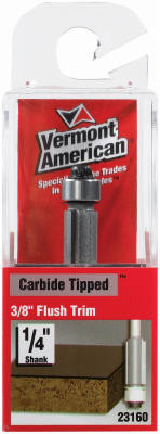 3/8" Flush Trim Router Bit, 3/8" x 9/16", Flush Trim, 1/4 Shank. vendor ID: 23093 Price/Unit: 5.99EA model: 23160