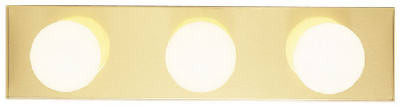 3 Light Bath Bar, Polished Brass Finish, Width 18", Height 4-1/2", Extends Without Bulbs 2-1/4", Extends With Bulbs 5-1/4", Uses 3 White Or Clear Standard Base Bulbs, G-25, 100W Maximum. vendor ID: 39800 Price/Unit: 14.99EA model: 66405