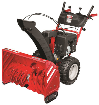 Troy-Bilt, 30", 2 Stage, Gas Snow Thrower, 357cc, 4-Cycle Troy-Bilt OHV Engine, Push Button Electric Start Installed, 30" Clearing Width, 21" Intake Height, Serrated Auger Design, Large 12" Impeller, Steel Gears In Cast Aluminum Gear Box, 6 Forward/2 Reverse Speeds, Power Steering, Single Hand Operation, Clutch Lock System, Ergonomically Designed Control Panel, Overhead 2-Way Remote Pitch Control, Extended Chute, Rugged 5" Polymer Chute, Heated Hand Grips, 16" x 6.5" Track Tires, In Dash Halogen Headlight, 5 QT Fuel Tank Capacity, Chute Clearing Device Standard, Oil Included In Engine, Fully Assembled, 2 Year Limited Warranty. vendor ID: 68965 Price/Unit: 1099.00EA model: 31AH55P5766