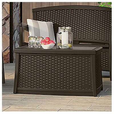 30 Gallon Storage Capacity, Wicker Look Resin Deck Box, With Storage, Hinged Lid, Could Also Be Used As A Coffee Table, Double Wall Resin Construction, Assembled Size: 34"W x 20"L x 18"H. vendor ID: 6072 Price/Unit: 109.00EA model: BMDB3010