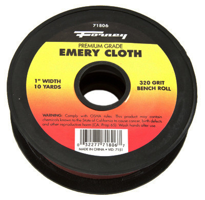 320 Grit, 1" x 10 YD, Emery Cloth, Bench Roll, Hand Sanding Dry & Cleaning Of Metal, Wood & Pipe Ends, Aluminum Oxide Coating, Open Grain Prevents Loading. vendor ID: 13649 Price/Unit: 6.99EA model: 71806