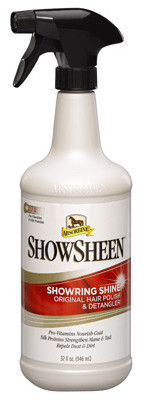Showsheen, 32 OZ, Hair Polish & Detangler, Formulated To Provide The Serious Horse Owner With An Unsurpassed Multi-Purpose Grooming Aid, Coats Each Hair Shaft To Keep Manes & Tails Tangle Free, While Its Conditioning Action Reduces Static Fly Aways, Coat Becomes Smooth & Sleek, Accentuating The Body Tone & Definition, Repels Dust, Dirt, & Stains, Protecting Your Grooming Job & Keeping Your Horse Cleaner Longer, Can Reduce Grooming Time By As Much As 80%. vendor ID: 6173 Price/Unit: 13.49EA model: 428891