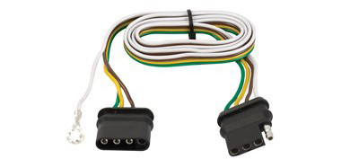 36" Long, 4 Way, Flat Trailer Wire Extension Loop, With Trailer & Vehicle End Connectors On The Ends, Designed With An Exposed Ground Wire On The Trailer Connecter End With A Ring Terminal Attached For Use On Trailers With An Electrical Ground That Uses The Trailer Frame As The Ground. vendor ID: 6987 Price/Unit: 7.99EA model: UE047105
