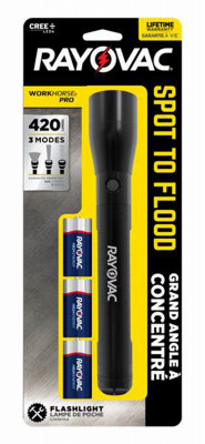 Workhouse Pro, 3 "C" LED Spot To Flood Flashlight, 3 Modes: Flood, Spot & Strobe, Beam Distance 220 Meters, Run Time: 20 Hours On High, 74 Hours On Energy Saver, 1M Drop Tested, Water Resistant, Uses 3 High Energy "C" Batteries, Included, Lifetime Warranty. vendor ID: 36442 Price/Unit: 34.99EA model: STF3C-B