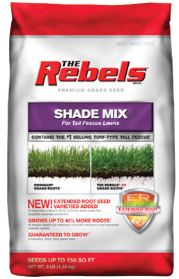 Pennington The Rebels, 3 LB, Tall Fescue Shade Mix Grass Seed, Helps You Grow Grass In Full Shade, The Seed Features Extended Root Seed Varieties, So Your Lawn Can Thrive During The Summer, Covers Up To 750 SQFT, Guaranteed To Grow A Beautiful Thick, Dark Green Lawn. vendor ID: 2304 Price/Unit: 13.99EA model: 100526878