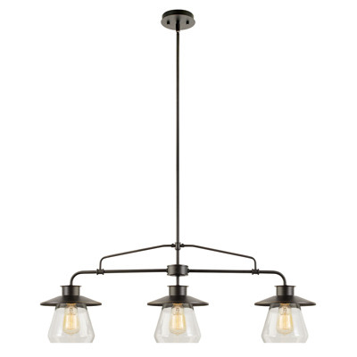 3 Light Pendant, Clear Glass Shades, Oil Rubbed Bronze Finish, Uses 3 A19 60W Vintage Style Medium Base Bulbs, Not Included, Dimmable, Three 15". Connecting Rods & 3 Glasses Shades Included, 45" Adjustable Hanging Rod, Hardwired, 36"W x 45"H, Mounting Hardware Included, Culus Listed. vendor ID: 3900 Price/Unit: 92.99EA model: 64845