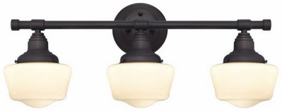 Iron Hill, 3 Light, Interior Wall Fixture, Oil Rubbed Bronze Finish With Highlights, Slightly Flared Metal Shades. vendor ID: 39800 Price/Unit: 89.99EA model: 63434