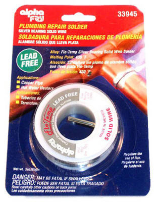 3 OZ, .125 Diameter Spool Plumbing Solder, Lead Free, Solid Wire Silver Bearing. vendor ID: 93146 Price/Unit: 10.49SPL model: AM33945