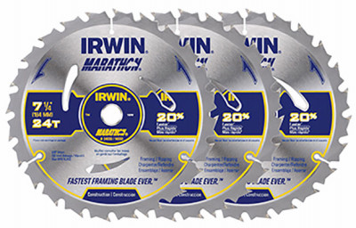 3 Pack, 7.25", 24 Tooth, Marathon Circular Saw Blade, 5/8" Universal Arbor, Precision Honed & Impact Resistant, Ultra Thin Kerf Results In Less Wood Cut & Extends Life Of Blade, Heat Vent & Expansion Slot Design Reduces Vibration For Longer Life & Straighter Cuts, Clam Shell Packed. vendor ID: 1776 Price/Unit: 14.97EA model: 2002791