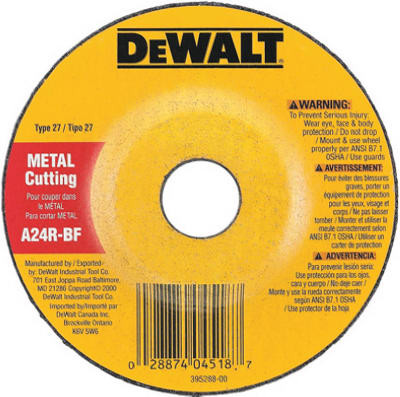 4-1/2" x 1/8" x 7/8" Arbor, Fast Cut Metal Depressed Center Wheel, Double Reinforced With Industrial Grit & Glue For Increased Life & Durability, Superior Friability Allows Wheel To Break Down Quickly Consistently Exposing New Grain For Increased Sharpness & Longer Life, For Low Angle & Vertical Grinding, Bulk. vendor ID: 22426 Price/Unit: 3.99EA model: DW4518