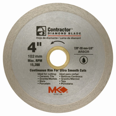 4", Continuous Rim Premium Blade, Arbor Size 5/8", For Wet Or Dry Cutting Of Ceramic, Porcelain & Marble Tile. vendor ID: 48181 Price/Unit: 19.99EA model: 6-4003Q