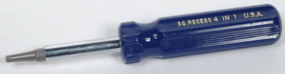 Square Recess 4 In 1 Screwdriver, Contains Sizes #3 Square Recess, #1 Square Recess, #2 Square Recess & #0 Square Recess, Alloy Tool Steel, Unbreakable Plastic Handle. vendor ID: 991 Price/Unit: 7.49EA model: 59370