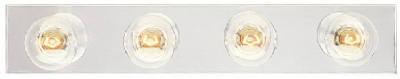 4 Light Bath Bar, Chrome Finish, Width 24", Height 4-1/2", Extends Without Bulbs 2-1/4", Extends With Bulbs 5-1/4", Uses 4 Clear Standard Base Bulbs, G-25, 100W Maximum. vendor ID: 39800 Price/Unit: 17.99EA model: 66411