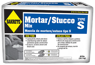 40 LB, Sakrete Type S High Strength Mortar Mix, A Quality Mixture Of Sand & Cement, For Laying Brick, Block & Stone, For Building Load Bearing Walls Above & Below Ground Level, For Tuck Pointing Mortar Joints & Stuccoing Walls. vendor ID: 7451 Price/Unit: 6.39EA model: 65300042-RDC04