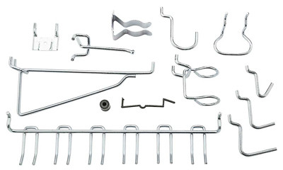 V2396, 48 Piece, Zinc Plated, Pegboard Hook Assortment Kit, For Organizing A Variety Of Tools & Items On Pegboard, Easy, Self-Installation, For 1/8" & 1/4" Pegboard, Steel Material. vendor ID: 36939 Price/Unit: 9.49EA model: N112-062