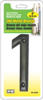 4", Bronze Finish, Old World Prestige Series, House Number 1, Weather Resistant, Easily Screws Into Mounting Surface Mounting Screws Included Or Use With Hy Ko Prestige Series Plaques, Individually Packaged. vendor ID: 49601 Price/Unit: 5.49EA model: BR-42OWB/1