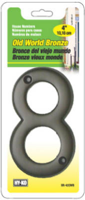 4", Bronze Finish Old World Prestige Series, House Number 8, Weather Resistant, Easily Screws Into Mounting Surface Mounting Screws Included Or Use With Hy Ko Prestige Series Plaques, Individually Packaged. vendor ID: 49601 Price/Unit: 5.49EA model: BR-42OWB/8