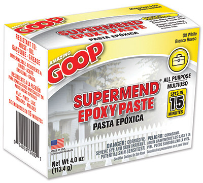 4 OZ, Super Mend Epoxy Paste, 2 Part Household Repair & Filler, Sets In 15 Minutes, Bonds To Glass, Ceramics, Tile, Wood, Metals & Many More Surfaces, Many More Uses Than Syringe Epoxies, Waterproof, Resistant To Grease, Detergents, Oil & Fuel, Mixing Cups & Stir Sticks Included 1:1 Mix. vendor ID: 29959 Price/Unit: 9.99EA model: 5330031
