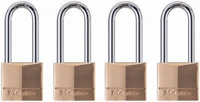 4 Pack, 1-9/16", Solid Brass Long Shackle Padlock, Keyed Alike, With Hardened Steel Shackle, 4 Pin Tumbler Security, Uses Master Lock Key Blank K130BOX Or Ilco Blank M13 TV #342-543. vendor ID: 36863 Price/Unit: 27.99EA model: 140QLH