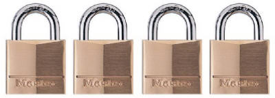 4 Pack, 3/4" Solid Brass Padlock, Keyed Alike, Brass 4 Pin Tumbler Locking Mechanism, 7/16" Shackle, 5/32" Shackle Diameter, Uses Master Lock Key Blank K120BOX Or Ilco Blank 1092VB, TV #837-263, Carded. vendor ID: 36863 Price/Unit: 10.49EA model: 120Q