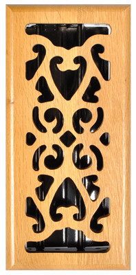 4" x 10", Oak Scroll Traditional Register, Elegantly Styled Pre-Finished Solid Oak, Hand Assembled, Complements Most Popular Floor Finishes, Easy to Operate Damper Control. vendor ID: 23523 Price/Unit: 21.99EA model: RG1834