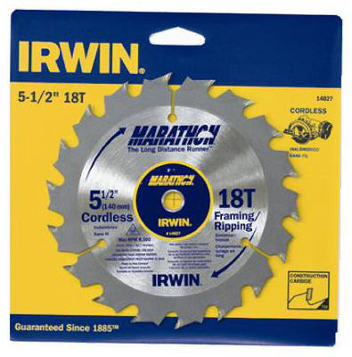5-1/2", 18 Tooth, Marathon Cordless Carbide Circular Saw Blade, 10mm Arbor, For Framing/Ripping, Ultra Thin Kerf For More Cuts Per Charge, Face Ground Carbide Teeth For Fast, Clean Cuts, Aggressive Hook Angle For Fast Cuts, Construction Grade Carbide Teeth For Longer Life, Carded. vendor ID: 1776 Price/Unit: 16.99EA model: 14027