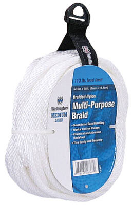 5/16" x 50', Silvery White, Solid Braided Nylon Cord, Load Limit 113 LB, Peg Pack. vendor ID: 81729 Price/Unit: 12.99EA model: 16367