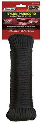 5/32" x 50', Black, Nylon Reflective Paracord, 550 Military Grade Paracord, Made From 100% Nylon, Uses In Outdoor Recreation Such As Tent Guy Lines, Shoelaces, Clothesline, Shelter Building, Lifting & Hanging Gear, Reflective Tracers In Cord Visible For 200' In Low Visibility Environments. vendor ID: 81729 Price/Unit: 7.99EA model: NPCR5503250B