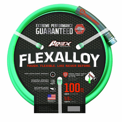 5/8" ID x 100', Light Green, Flexalloy Industrial Duty Garden Hose, Superior Flexibility, High Burst Strength -500+PSI, Industrial Grade Aluminum Couplings, Crush Proof To 1,600 LB, Strain Relief At Female Coupling, Kink Resistant, Scuff Resistant, Lifetime Guarantee. vendor ID: 67736 Price/Unit: 59.99EA model: 8550-100