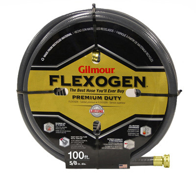 Gilmour, 5/8" x 100', Flexogen Hose, The Only 8 Ply Hose In The Market, More Plys Equal Greater Strength, Premium Features, Lightweight & Flexible, Floats, Mildew & Abrasion Resistant, Heavy Gauge, Crush Resistant Brass Couplings, Double Tire Cord Reinforced For Strength, Flow Guard Plus Collar Prevents Kinks Near Faucet, O Ring Seal For Leakproof Performance, Applicable For All Weather Conditions, Full Lifetime Replacement. vendor ID: 48751 Price/Unit: 77.99EA model: 874001-1001