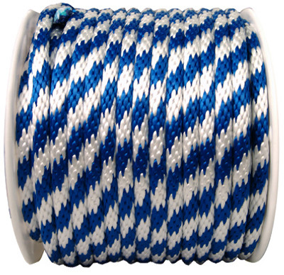 5/8" x 200', Blue/White, Solid Braid Polypropylene Rope, Multi-Purpose, Load Class Medium, Safe Working Load 225 LB, Bulk Reel. vendor ID: 81729 Price/Unit: 200.00SPL model: P7240S0200BWFR