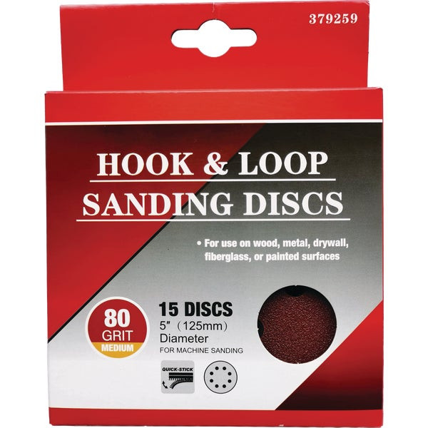 - 5 In. 80-Grit 8-Hole Pattern Vented Sanding Disc with Hook & Loop Backing (15-Pack)
