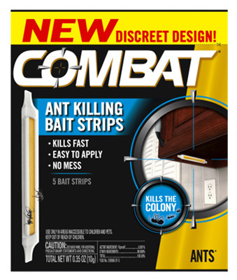 Combat, 5 Count,.34 OZ, Ant Killing Bait Strip, Adhesive Sticker For Placement Anywhere, 3 Easy Steps To Use, Break Apart, Peel Backing & Stick & Activate, Ants Take The Bait Home To Kill The Colony. vendor ID: 3550 Price/Unit: 5.49EA model: 00999